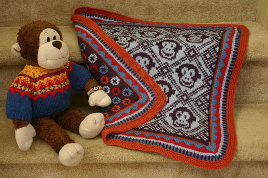 Sleepy Monkey Blanket PDF, knit in worsted weight wool.