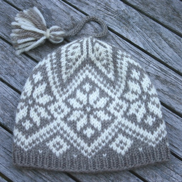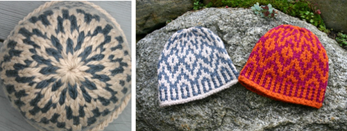 The Wintergarden Hat, which coordinates with the Wintergarden Pullover, above, is a circularly knit, stranded knitting design using simple, classic Norwegian and Fair Isle motifs to produce a stunning effect with little effort.